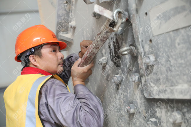 在新機投入運行后,每班工作完畢時須對反擊式破碎機進行面的檢查。每周運行后對其電機、潤滑度進行一次面檢查。檢查內容包括固定部位的緊固情況、皮帶傳動、軸承密封、反擊襯板、襯板的磨損情況,并結合檢修周期建立定期的維修和更換制度。常規的檢修保養應包括:反擊式破碎機的轉子和反擊襯板的間隙調整,及時更換易損件,定期檢查板錘、襯板、軸承溫度等。