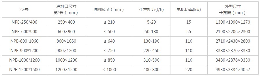 顎式破碎機(jī)型號(hào)技術(shù)規(guī)格