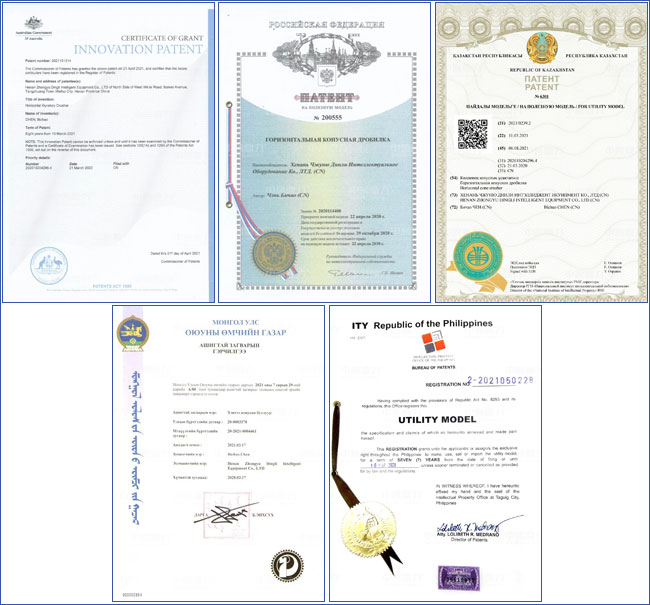 繼5項際專利(澳大利亞、俄羅斯、哈薩克斯坦、蒙古、菲律賓)的實力在冊之后,近日,由中譽鼎力技術部工程師自主研發設計的DLHGC臥式旋回破碎機憑借其、智能等優勢榮獲家專利、多項家實用專利和外觀設計專利!