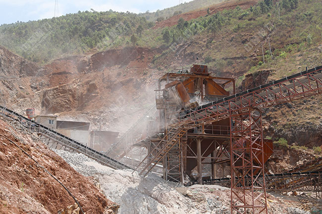 篩分單元:在毛石含泥量較大時,應調大棒條給料機棒條間距,提高篩分效率,進入鄂破的毛料含泥量達標。棒條給料機篩下物料經(jīng)土篩篩選回收可使用細毛石。
