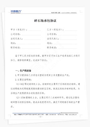 獲取砂石加工合同模板與生產(chǎn)線承包協(xié)議范本!覆蓋砂石生產(chǎn)線設(shè)備租賃、加工責(zé)任劃分、工期結(jié)算、質(zhì)量驗(yàn)收、違約責(zé)任等重要條款,適用于砂石廠合作、工程承包、礦山開發(fā)等場(chǎng)景。