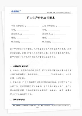 鑒于甲方是一家具有開采礦山資質(zhì)的企業(yè),乙方是一家具有礦山外包服務(wù)資質(zhì)的企業(yè),雙方本著平等互利的原則,經(jīng)協(xié)商,就甲方將其礦山開采業(yè)務(wù)外包給乙方一事達(dá)成如卜協(xié)議:
