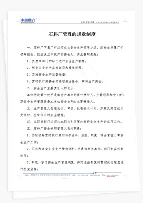 1、為加強石料廠員工管理,提高工作效率,確保生產安全,維護企業和員工的合法權益,根據國家相關法律法規,結合我廠實際情況,制定本制度。