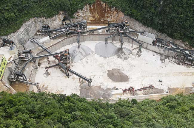 該采石場年產300萬噸,建設工期為5個月,采用礦山設備有DLZG1550給料機+DLPCZ1815重錘破+DLPC1220破碎機+DLZSJ1416雙轉子制砂機+DL3YKZ3070振動篩及配套設備,生產線主機設備均在硼化設計的車間完成碎石加工,通過密閉設計皮帶機送至儲料倉中。