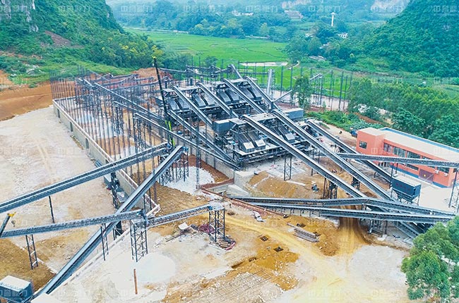 日產4萬噸的砂石生產線設備配置方案有兩種,一種方案是單臺主破+兩臺二破組成的一條生產線,另一種是多臺主破+多臺二破組成的兩條生產線同時運行。