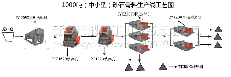 物料經由原料倉進入振動給料機,把物料以均勻的速度輸送至破碎機破碎腔內部進行破碎,破碎后的物料經過圓振動篩進行篩分,滿足粒度的物料被輸送至成品料堆,不滿足粒度的物料經皮帶輸送機再次運輸到破碎機內部進行再次破碎,達到規格粒度物料可被運往成品料堆,進行存放處理。(可根據物料粒度適當增加或減少設備)