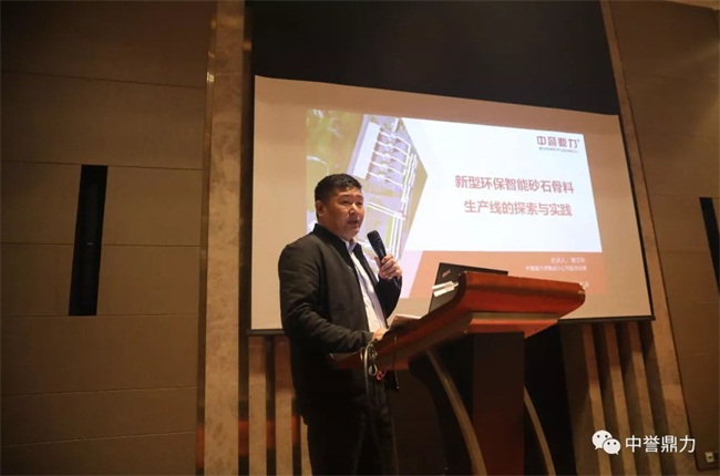 中譽鼎力作為砂石行業內提倡環保、集約、智能化生產發展的企業,在積推動各地礦山資源整合,提倡規范環保制砂。會議現場,中譽鼎力裝備設計公司副總經理兼大客戶項目部總經理原文秋做了“環保智能砂石骨料生產線的探索與實踐”的主旨演講。