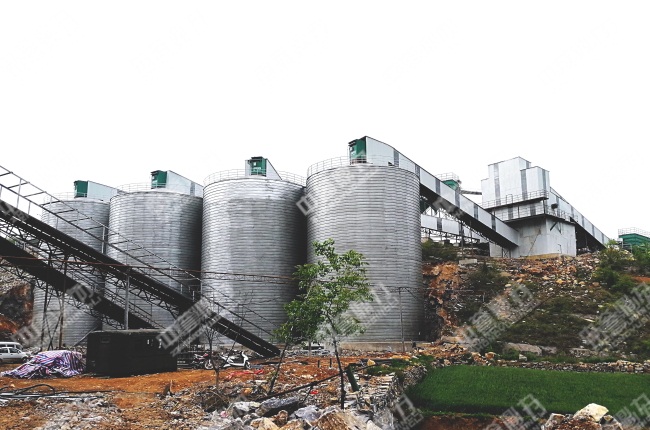 生產線引入中譽鼎力PCZ1615重型錘式反擊式破碎機、PC1216整形式破碎機等設備,時產量600噸;各個環節均采取封閉措施,杜粉塵外溢。例如在儲料環節引入封閉的儲料罐,便于分類儲存銷售。針對生產線中產生的石粉,加裝除塵器進行集中收塵,后續集中利用,再次銷售。