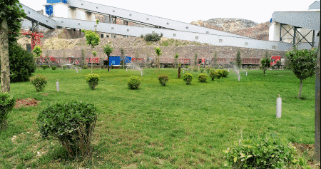 項目總體采用噴霧、灑水、濕式鑿巖、加裝除塵設施等措施處置采選、運輸過程中產生的粉塵和遺撒,做到礦區無揚塵。生產線每個出塵點均設置DMCA脈沖袋式除塵器,完善的除塵系統及時吸收98%以上的粉塵,粉塵排放量小于10mg/m3,符合家規定,實現綠色環保生產。