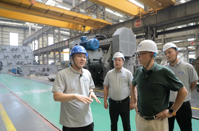 中譽鼎力集團副董事長馬鈺博、技術(shù)總監(jiān)劉海淘在智能化車間為砂石骨料網(wǎng)考察團成員一一介紹了集團主營產(chǎn)品及其制造工藝,并對硬巖設備代表產(chǎn)品臥式旋回破碎機進行了詳細的講解。