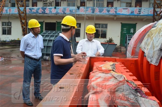 作為水泥生產企業的技術,袁總工與我們公司導一行,又深入到生產車間進行深入了解,對于我們公司生產的重型錘式破碎機、重型振動篩設備一一進行了詳細查看,針對設備設計、制作工藝進行了了解,并給出了眾多建設性建議,對于我們公司設備的設計、制作起到了很大的啟發作用,可以應用在今后的設備設計、加工中。
