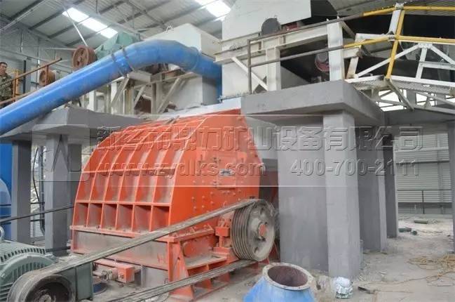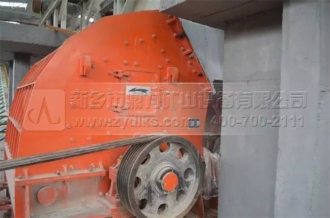 上圖為生產線上配置的頭破設備,選用的型號為內目前錘式破碎機單臺產量的PCZ2125破碎機設備,單臺時產量可以達到2500噸以上,是由我們公司自主研發生產的。