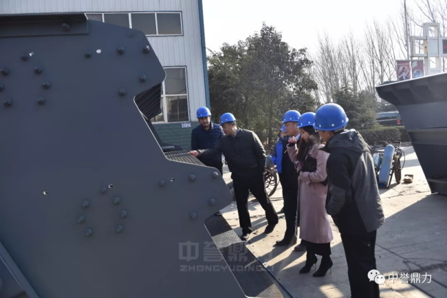 在生產車間,考察團對中譽鼎力振動篩、重型錘式反擊破碎機的設計進行了詳細了解。中譽鼎力注重產品質量、不斷精益求精的發(fā)展理念贏得了眾人一致贊許。