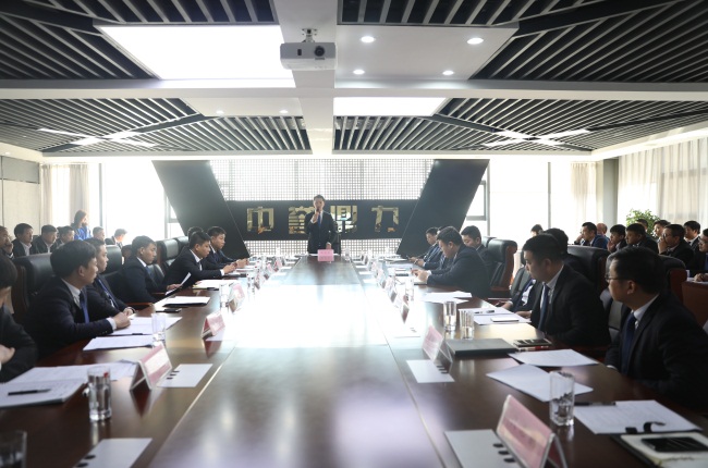 中譽鼎力總經(jīng)理張治民、中譽鼎力裝備設(shè)計有限公司總經(jīng)理馮濤、鼎力礦山設(shè)備公司副中譽鼎力裝備設(shè)計有限公司副總經(jīng)理兼大客戶項目部總經(jīng)理原文秋、中譽鼎力裝備設(shè)計有限公司EPC項目部總經(jīng)理張永臣,各服務(wù)總經(jīng)理及銷售人員近百人參加會議。