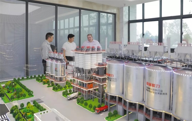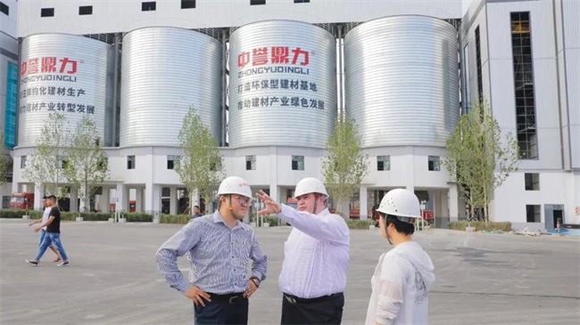 隨后,考察團一行來到了中譽鼎力智能裝備新廠區。馮總為考察團成員詳細介紹了中譽鼎力五位一體循環建材產業園沙盤。該項目體現了產業集聚和循環鏈接效應,在提高礦石資源綜合利用率和產品附加值、控制原材料運輸成本等方面具有突出優勢。