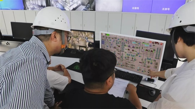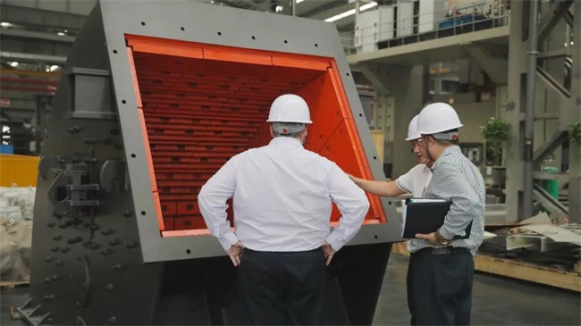 考察團先來到中譽鼎力承建的衛輝市資源有限公司時產3000噸砂石骨料生產線參觀,了解該項目在規模化、環保化、智能化的高砂石骨料生產方面的經驗。亞太總監 Glen先生多次表示impressive(驚嘆),據他介紹,在澳大利亞當地,時產300-500噸算是規模大的,也沒有封閉生產的概念。