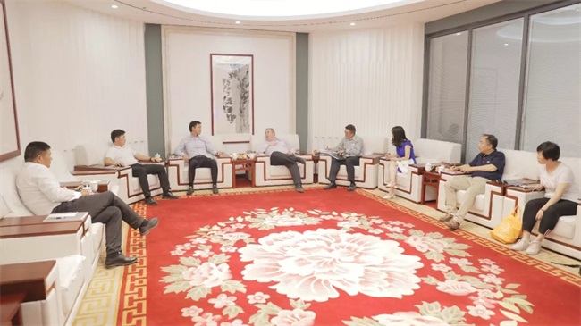 在商務會議室,考察團成員與河南中譽鼎力智能裝備有限公司董事長張治民、副總經理原文秋、新鄉市中譽鼎力裝備設計有限公司總經理馮濤等人進行座談,共同探討礦業新技術應用與發展。