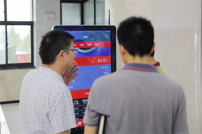 在公司智能化展示,原陽縣考察團導一同觀看了中譽鼎力企業(yè)宣傳片,張治民董事長為大家詳細講解了中譽鼎力五位一體循環(huán)建材產(chǎn)業(yè)園項目,并現(xiàn)場演示了由中譽鼎力自主研發(fā)的礦山易購APP的具體應用操作。