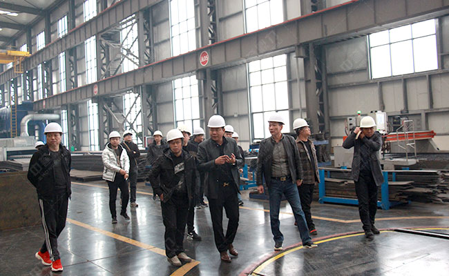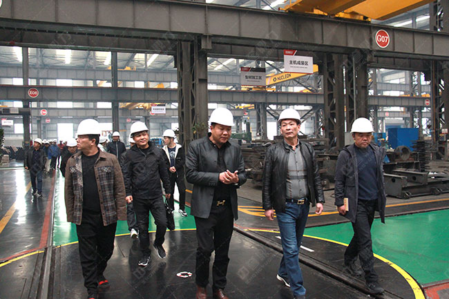 考察團先來到中譽鼎力智能裝備有限公司新廠區,參觀了智能化一體生產車間,對中譽鼎力的設備制造情況進行了了解。