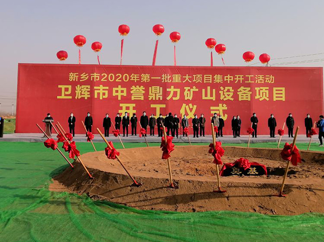 2月23日上午,在衛輝市產業集聚區隆重舉行新鄉市2020年批重大項目集中開工活動衛輝市中譽鼎力礦山設備項目開工儀式。新鄉市市長王登喜,副市長祁文華,市秘書長劉勇,衛輝市市委書記梁常運,新鄉市人大原副主任、唐莊鎮黨委書記吳金印,衛輝市市長范士富等導出席開工儀式。