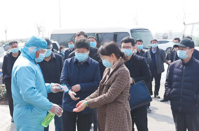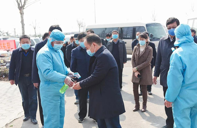 衛輝市市長范士富、衛輝市常務副市長李志勇、副市長董岐山等導程陪同指導調研。中譽鼎力董事長張治民詳細匯報了中譽鼎力的疫情防控工作和復工復產情況。