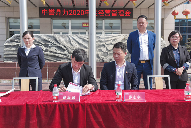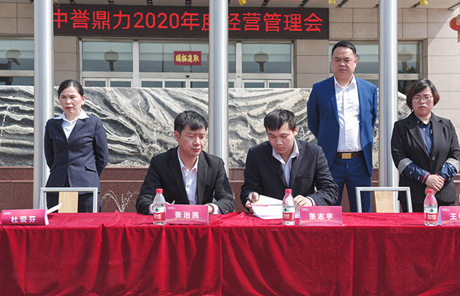 隨后,張治民董事長(zhǎng)與公司各分管副總經(jīng)理、部門長(zhǎng)簽訂2020年度目標(biāo)責(zé)任書(shū),并發(fā)表講話。