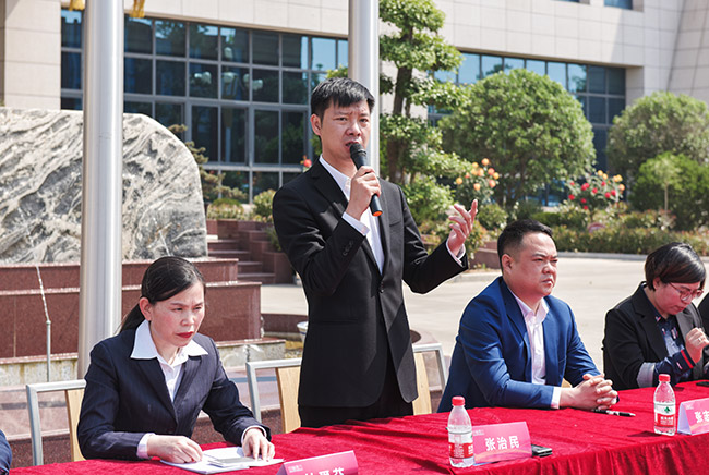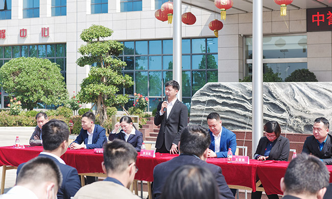 河南中譽(yù)鼎力智能裝備有限公司董事長(zhǎng)張治民、常務(wù)副總經(jīng)理張志宇、財(cái)務(wù)總監(jiān)杜愛(ài)芬、營(yíng)銷副總經(jīng)理王春燕、生產(chǎn)副總經(jīng)理李、行政副總經(jīng)理崔玉清,二分廠總經(jīng)理張志飛、副總經(jīng)理王士存出席現(xiàn)場(chǎng),公司行政各部門員工代表150余人參加會(huì)議。