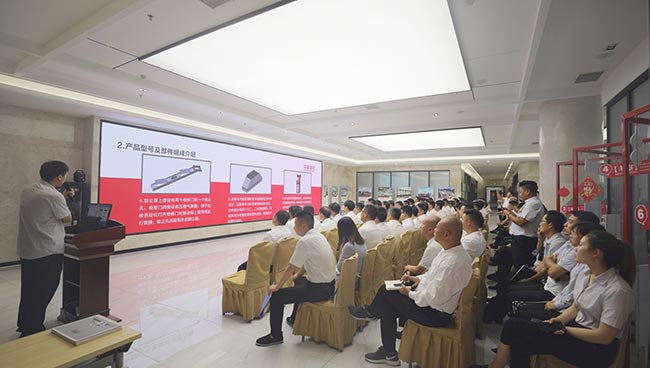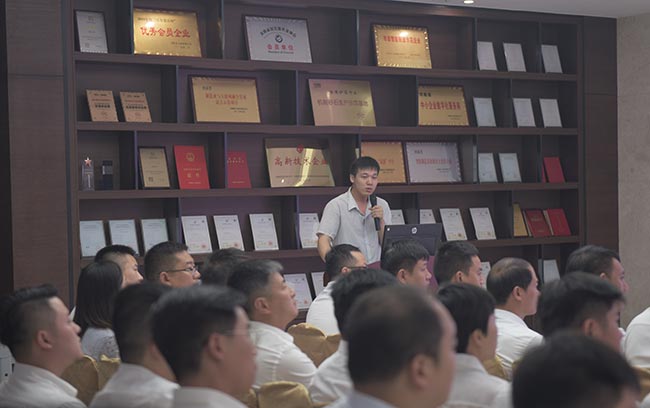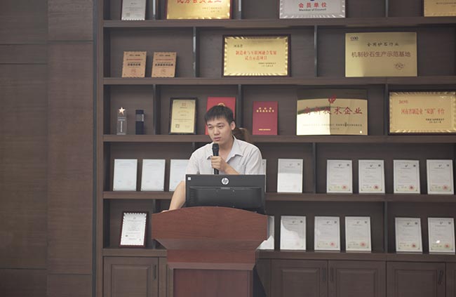 發布會上,河南中譽鼎力智能裝備有限公司技術部長劉海淘先后為大家介紹了DLPCZ、DLPC系列錘式破碎機、DL2YKZ3070振動篩密封鋼構、給料+破碎整體鋼構、移動式破碎站、干法制砂樓、選粉機等公司新上市設備,對設備的特點、分類、組成及安裝維護等內容進行了詳細的講解與說明,讓各地服務銷售代表對公司新上市設備及其優勢有了更深層次的了解和認識,便于今后營銷服務工作的開展。