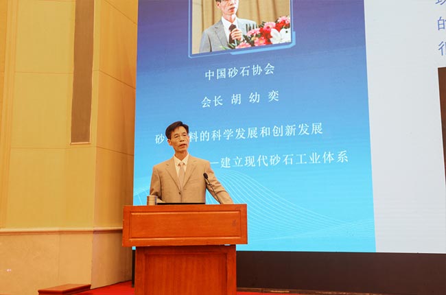 之后,中砂石協會會長胡幼奕作題為《砂石骨料的科學發展和創新發展——建立現代砂石工業體系》的主旨演講。