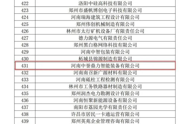 經過為期10天的公示階段,河南中譽鼎力智能裝備有限公司順利通過“家高新技術企業”認定!