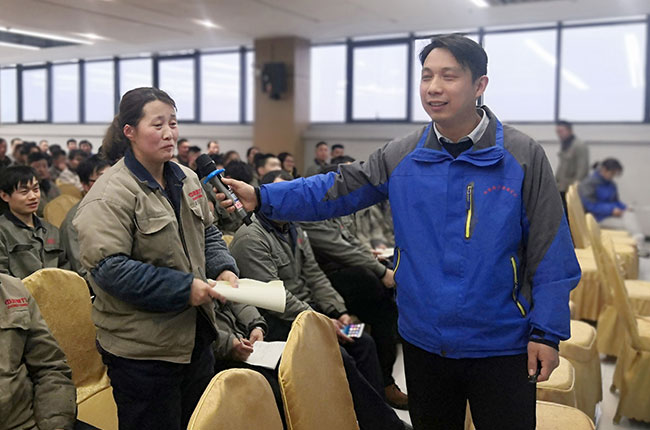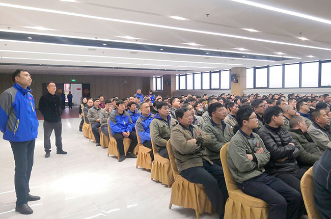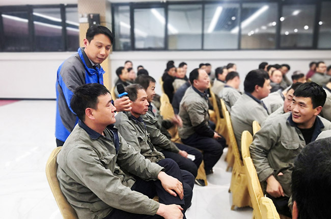 中譽鼎力智能裝備有限公司質(zhì)檢中心部長潘新磊、設備保障部部長王衛(wèi)生就機械識圖操作、安生產(chǎn)管理等主題對生產(chǎn)中心、質(zhì)檢中心、設備保障部等部門所有工人進行了詳盡而生動的安生產(chǎn)知識培訓。