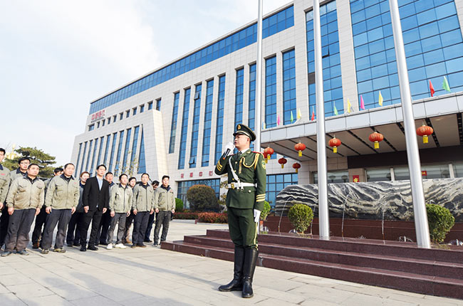 升旗過程中,體員工表情莊重嚴肅,向旗行注目禮。這一刻,所有鼎力人的心與祖同在;這一刻,每一位鼎力人都在用實際行動表達著對祖無限的熱愛和深深的祝福。
