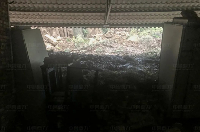 位于山西省呂梁孝義市的時產1000噸砂石骨料生產線,由河南中譽鼎力智能裝備有限公司EPC承建。受本次山西持續強降雨影響,該生產線的配電室被雨水沖毀,客戶損失嚴重,無法正常生產。