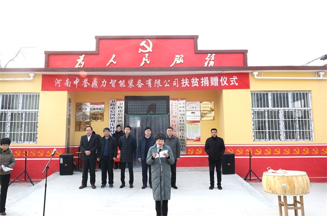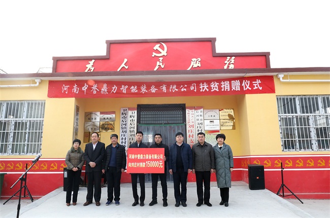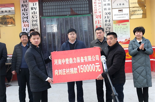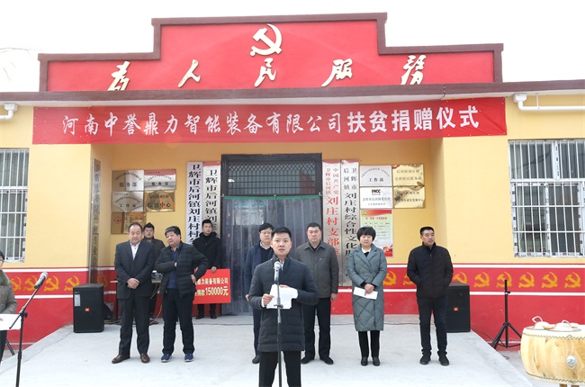 河南中譽鼎力智能裝備有限公司董事長張治民發(fā)表講話:“中譽鼎力作為土生土長的衛(wèi)輝企業(yè),離不開的關(guān)心和百姓的支持。公司牢記社會責任,積響應(yīng)扶貧工作,落實‘企業(yè)分包貧困村’政策,與后河鎮(zhèn)劉莊村結(jié)對幫扶。經(jīng)公司研究決定,河南中譽鼎力智能裝備有限公司此次向劉莊村捐款15萬元,主要用于劉莊村的基礎(chǔ)設(shè)施建設(shè)。”