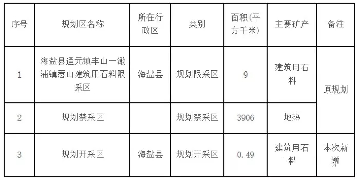 《嘉興市礦產資源與地質環境保護規劃(2016-2020)》調整如下: