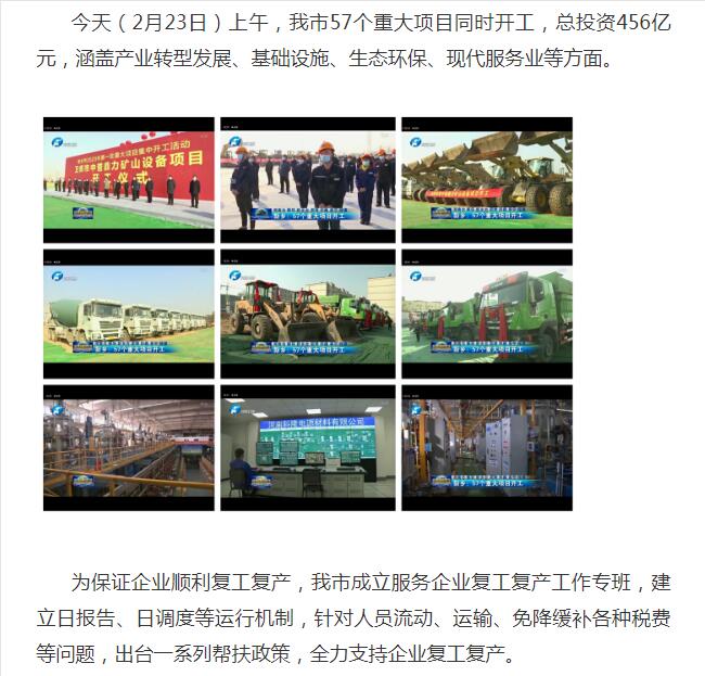 2月23日上午,新鄉市2020年批重大項目集中開工活動——衛輝市中譽鼎力礦山設備項目開工儀式順利舉行,深受社會及行業廣泛關注(點擊了解項目介紹)。河南省、新鄉市、衛輝市各級媒體、本地自媒體及中砂石網、砂石骨科網等行業主流媒體競相報道,為中譽鼎力一手抓疫情防控、一手抓項目建設的行為點贊。