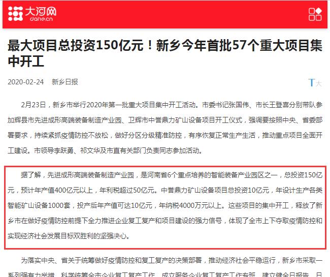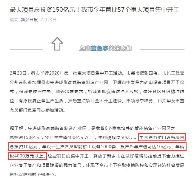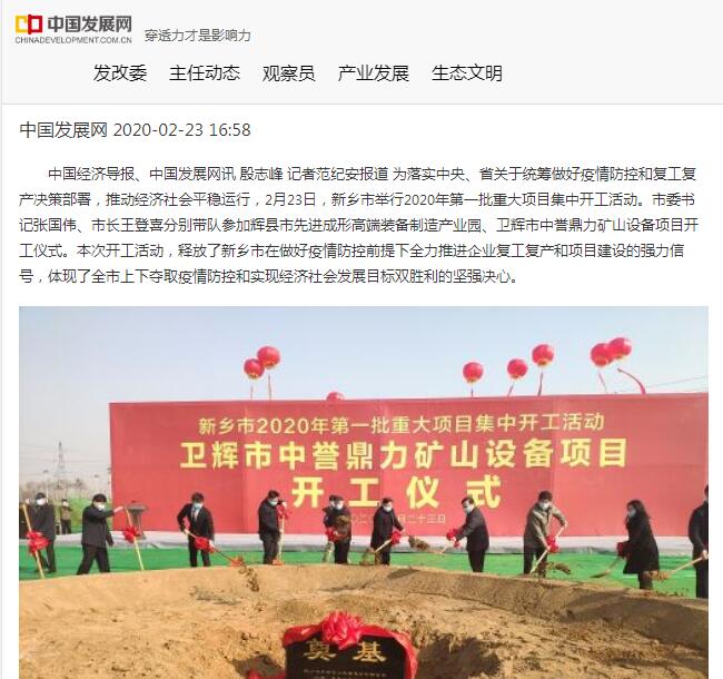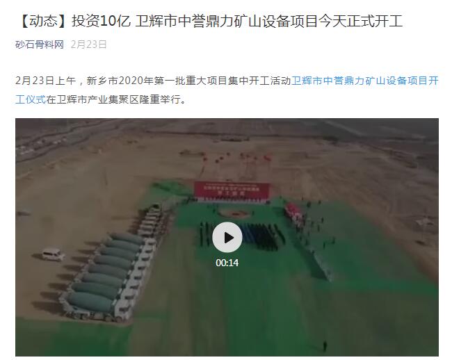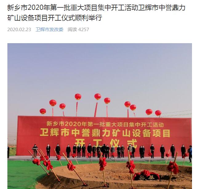 報道鏈接:【資訊】投資10億,衛輝市中譽鼎力礦山設備項目正式開工!