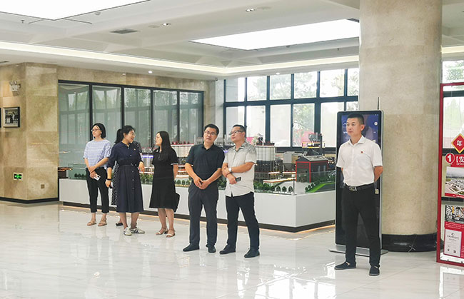 在中譽鼎力智能裝備有限公司綜合辦公樓,團市委導先后參觀了中譽鼎力企業文化墻、礦山管理云數據中心和多位一體循環建材產業園項目沙盤,對公司主營業務及近年來發展情況有了進一步了解。