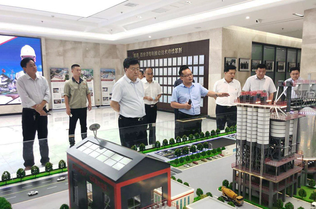 在智能裝備公司綜合辦公樓,調研導先后參觀了中譽鼎力企業文化墻和多位一體循環建材產業園項目沙盤,并觀看了公司相關宣傳片,對中譽鼎力主營業務及近年來發展情況有了進一步了解。