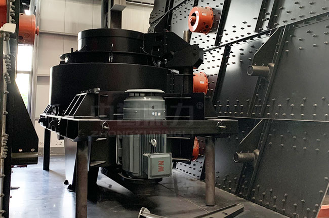 石料由機(jī)器上部直接落入高速旋轉(zhuǎn)的轉(zhuǎn)盤,在高速離心力的作用下,與另一部分以傘型方式分流在轉(zhuǎn)盤四周的靶石產(chǎn)生高速度的撞擊與高密度的粉碎,石料在互相打擊后,又會(huì)在轉(zhuǎn)盤和機(jī)殼之間形成渦流運(yùn)動(dòng)而造成多次的互相打擊、磨擦、粉碎,從下部直通排出。形成閉路多次特環(huán),由篩分設(shè)備控制達(dá)到所要求的粒度。