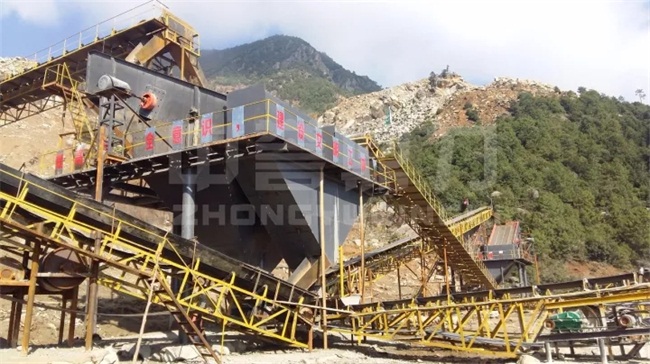 生產線套設備型號:KPC1313硬巖破碎機(1臺)、ZGC1250給料機(1臺)、3YKQ2470振動篩(4臺)等。