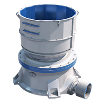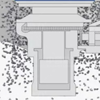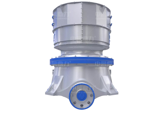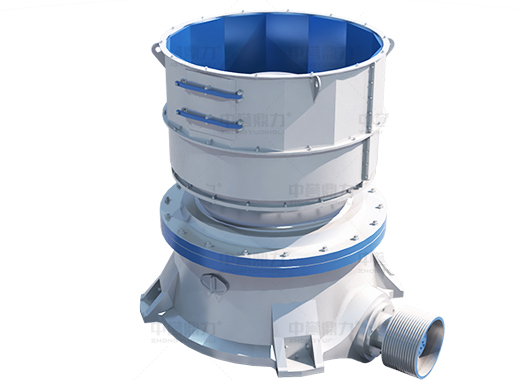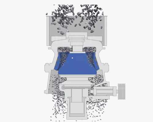水平軸在電機帶動下旋轉,通過齒輪帶動偏心套旋轉,偏心套帶動動錐做圓錐擺動,與定錐形成連續擠壓,達到破碎石塊的目的。 通過調整動錐底部的液壓缸,可以使動錐上下運動,從而控制排礦口的大小,進而達到調成產品粒度大小的目的。液壓缸具有過鐵保護功能,當有不可破碎物進入破碎腔,液壓缸控制動錐下落,不可破碎物下落排出后,動錐自動恢復,設備恢復到正常工作狀態。