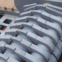 采用熱復合雙金屬高鉻合金錘頭,并且加長錘頭合金,利用率更高,并且縮小錘頭與錘頭之間縫隙,避免錘頭側面磨損