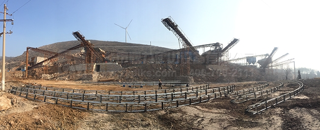 上圖我們看到是時產700-800噸石灰石破碎生產線建設現場,我司部采用鋼結構模塊化組裝方式,在生產車間將各個結構組裝完畢,然后再運輸到生產現場,提高了組裝效率,節省了大量的施工時間。