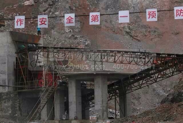 湖北咸寧這條時產400噸的石料生產線主要有這些配置:ZGC1538振動給料機、PCZ1615重型錘式破碎機以及3YKZ2060振動篩*2臺等。物料由振動給料機傳送至重型錘式破碎機機腔內進行從上到下的破碎,先粗破,再細破。被破碎后的物料經振動篩進行篩分分級,符合客戶成品粒度要求的物料被傳送帶送至各個成品料堆,不符合的物料被重新送回破碎機進行再次破碎。這就形成了閉路循環模式。這是一條節能、的石料生產線,以少的投資為客戶帶來大的利潤回報,深受客戶的歡迎與信賴。