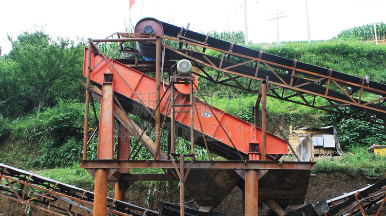此條時(shí)產(chǎn)300噸石料生產(chǎn)線所用礦山設(shè)備只有寥寥數(shù)臺(tái),但是產(chǎn)量卻可以達(dá)到時(shí)產(chǎn)300t/h,這主要得益于我們的PCZ1512重型錘式破碎機(jī),該設(shè)備單機(jī)時(shí)產(chǎn)可達(dá)320噸左右,且可以一次成型,在場地、耗電量、設(shè)備投資等方面遠(yuǎn)遠(yuǎn)低于顎破和反擊破的投入。