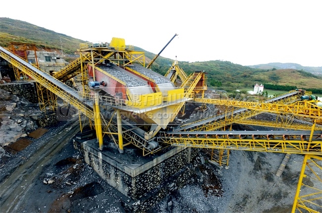 從時產500噸石灰石制砂生產線圖集上我們可以看到,在生產線上各除塵點配置了DMCA型礦山除塵器和礦山振動篩,經過至少兩次篩分的過程,可以達到終篩分的,再進入到下一道生產程序中,DMCA型礦山除塵器,可以將石料生產中粉塵吸收率提高到90%以上。