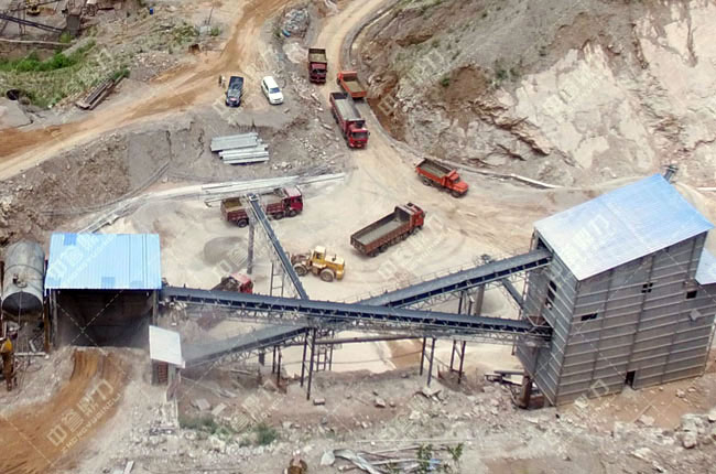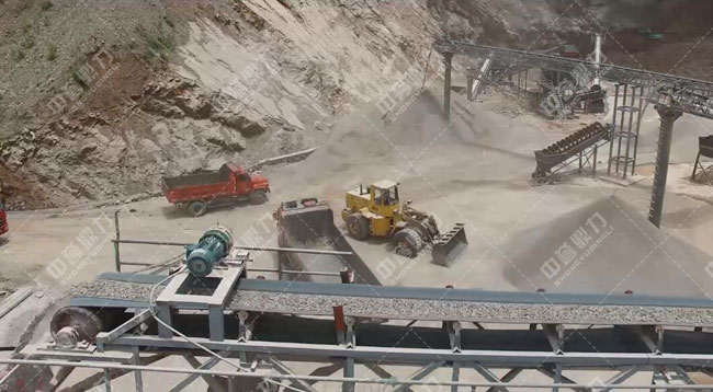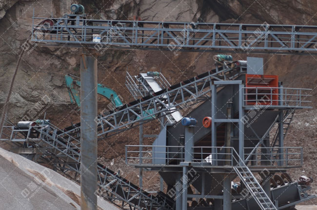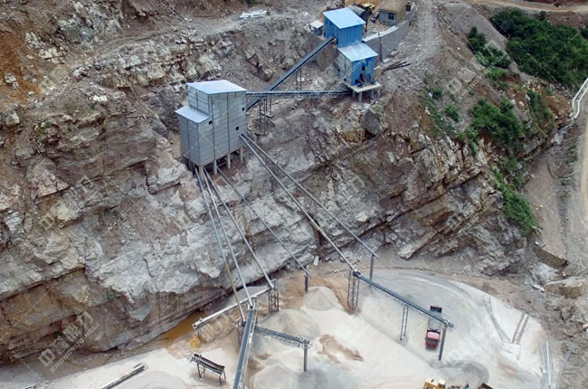 利用地形落差,破碎篩分后的成品料經過管道直接落到成品料堆,節省輸送帶方面的投資;