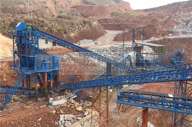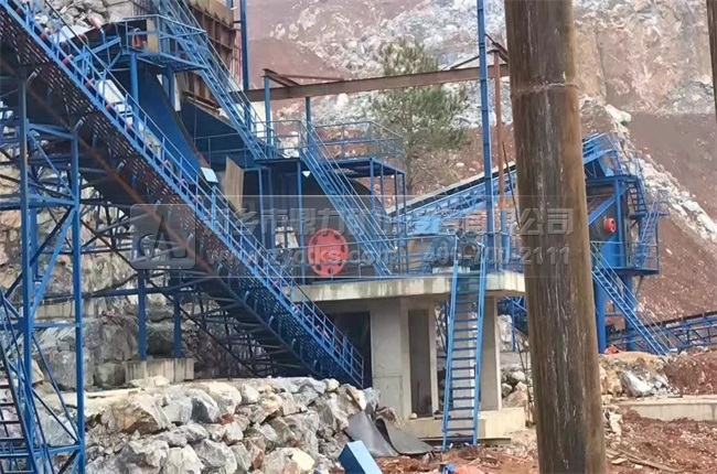 從生產現場我們看到,此條時產600噸錘式破碎機石料生產線是依托螢石礦建成的,螢石是工業上氟元素的主要來源,它廣泛用于醫藥、防腐、機械等域,是一種硬度較脆的物料,為了減少生產中產生的石粉,我們設置了多臺破碎機進行再次破碎的環節,然后將回料輸送到破碎機內進行再次破碎,終可以達到客戶出料粒度的要求。