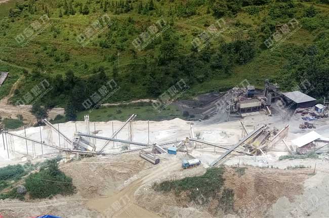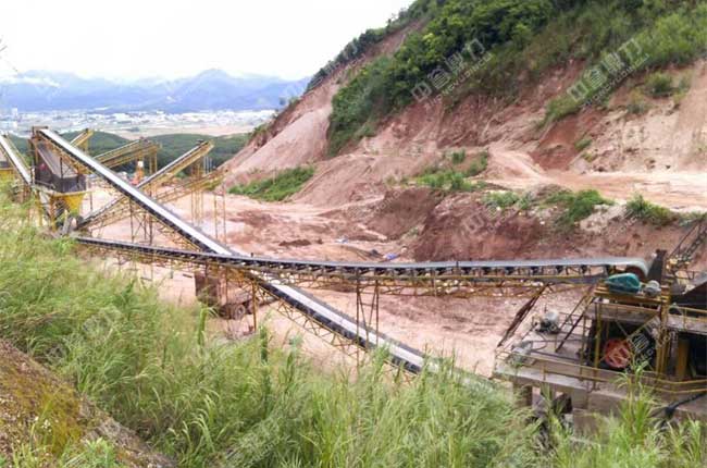 ZG1550振動(dòng)給料機(jī)將大塊物料均勻、連續(xù)的送至一臺(tái)PCZ1615重錘式破碎機(jī)進(jìn)行粗碎,粗碎后的物料由一道并篩,也就是兩臺(tái)3YKQ2470振動(dòng)篩進(jìn)行篩分,篩分出來(lái)的大塊物料由皮帶輸送機(jī)送到XPC1216錘式破碎機(jī)進(jìn)行進(jìn)一步破碎,再由皮帶輸送機(jī)送至4YKQ2670進(jìn)行篩分,篩分出1-3、1-2石子、瓜米石和0-5等不同規(guī)格,其中篩分出來(lái)的0-5mm的機(jī)制砂被送至XS3016輪式洗砂機(jī)進(jìn)行清洗。